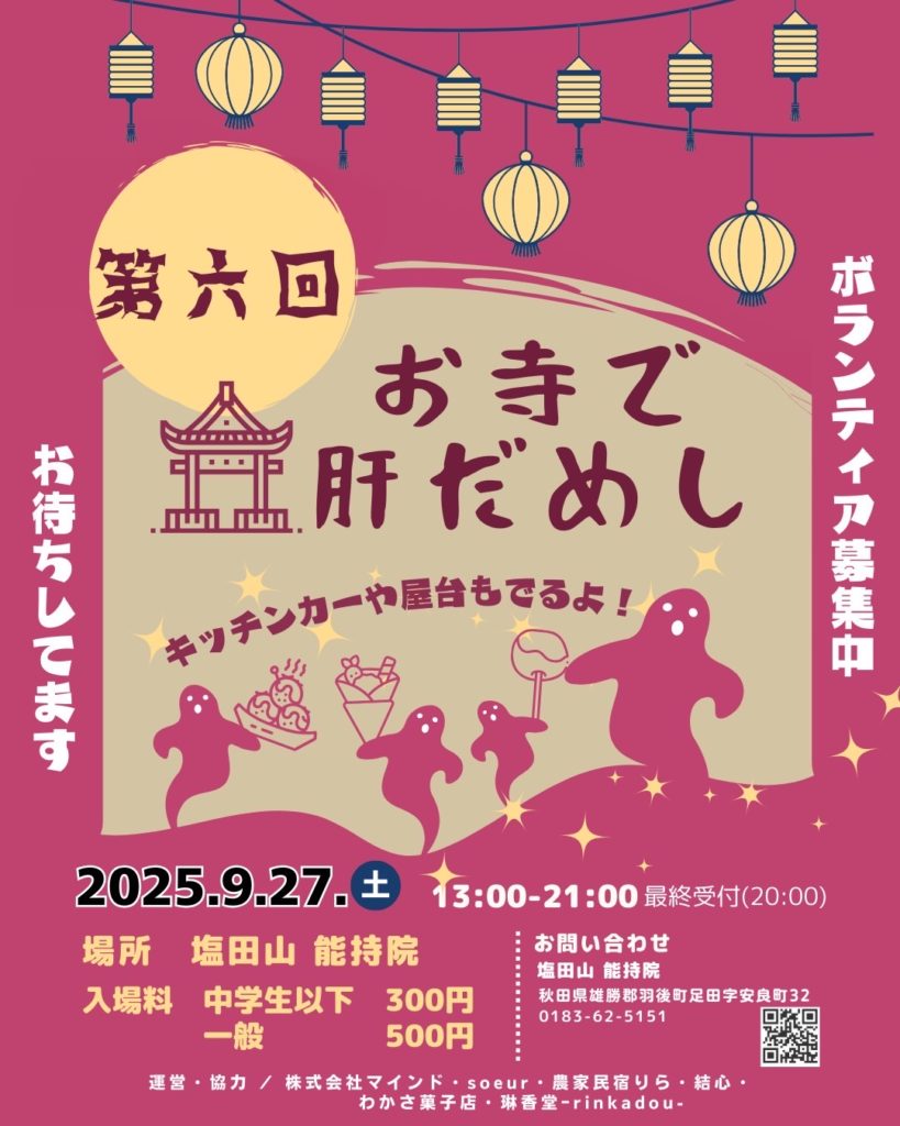 - 会場 塩田山 能持院(雄勝郡羽後町足田字安良町32 ℡0183-62-5151)